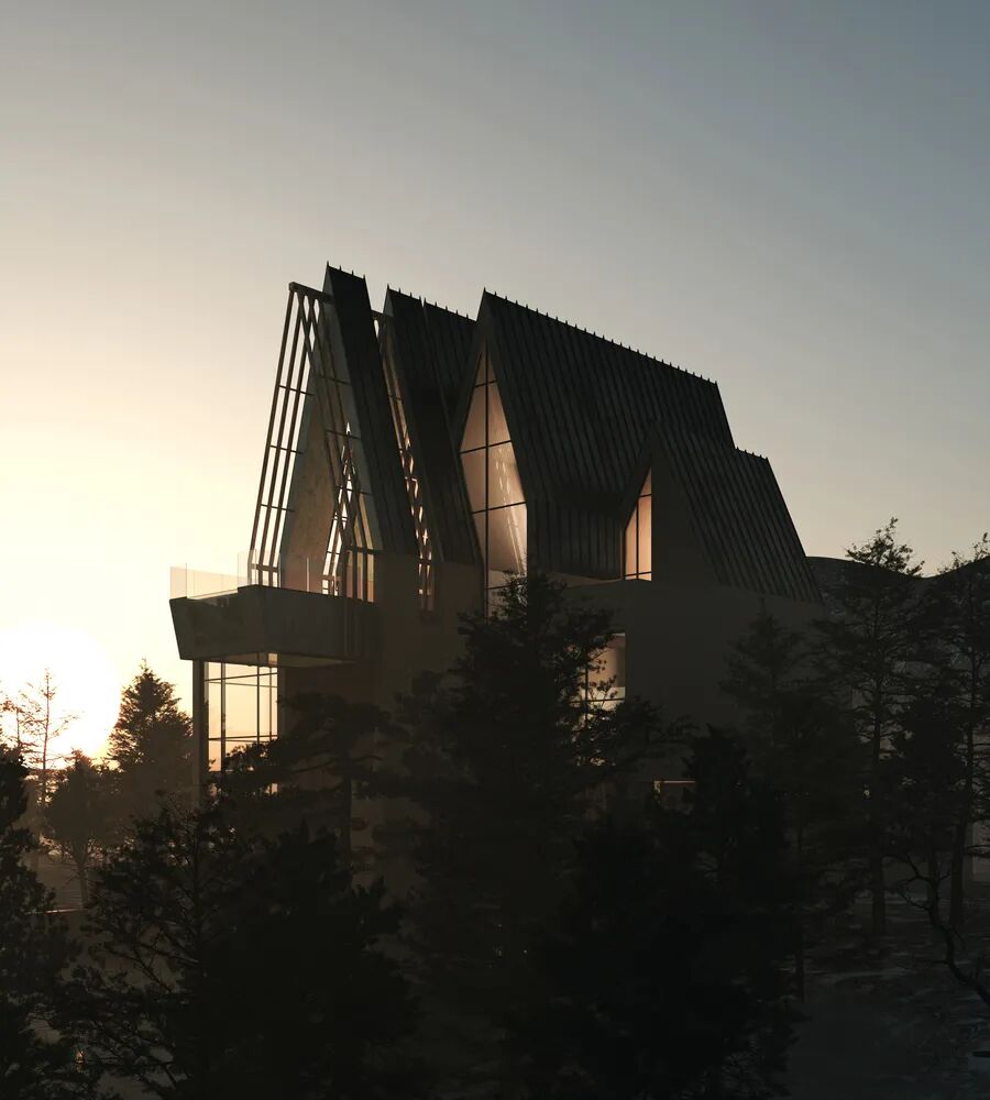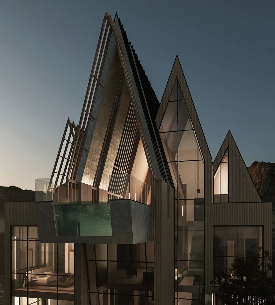 这栋别墅位于达马万德的玛拉,这里的位置被河流和山脉环绕。受到连接河流和山脉的想法的启发,我们试图在河流的不规则波浪中找到规律,来构成这座别墅的最初墙壁。所有这些墙伸至屋顶并相互连接,形成了 chartigh 别墅。在最后一层,一座带有5.5米控制台的游泳池像河流一样从其中一座山峰的中心浮现出来,再次体现出chartigh 别墅是来自大自然的别墅,并希望成为其自然的一部分。