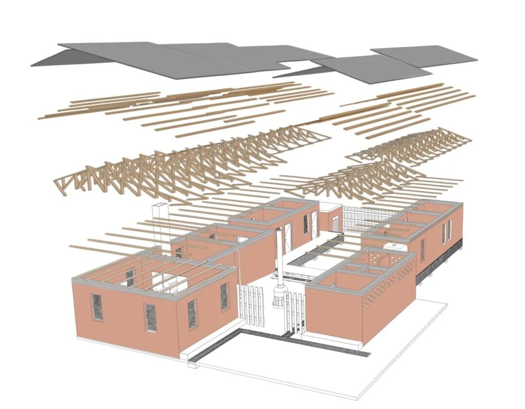 该项目是为一个非洲家庭打造的住房竞赛项目。这座房子被创建为模块,以创建一个统一内部和外部规划的关系。选址的决定是基于对现有道路的保护,房屋位于空地上,以便家庭在建造时可以居住。在可持续性和房屋预算方面,容易获取的当地材料成为首选。