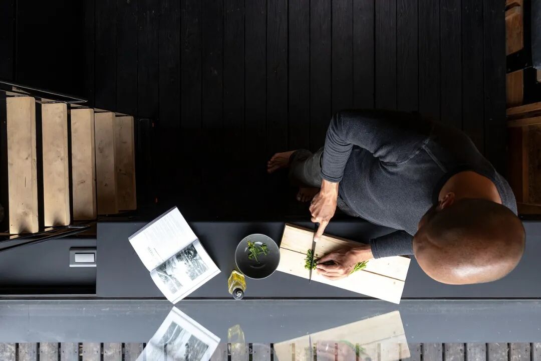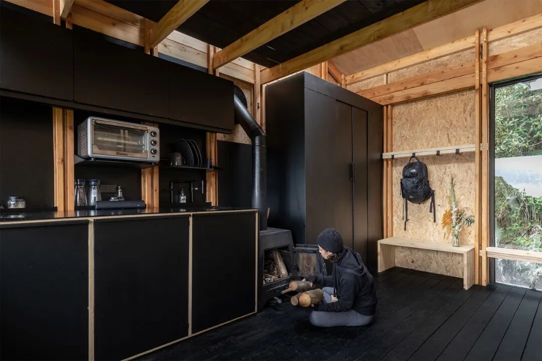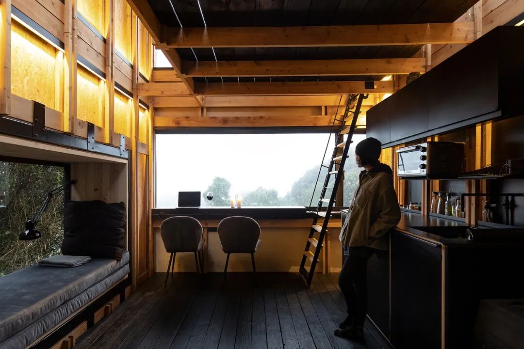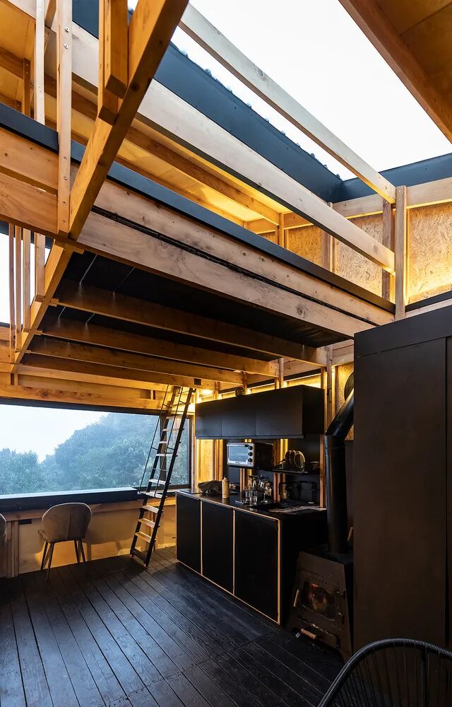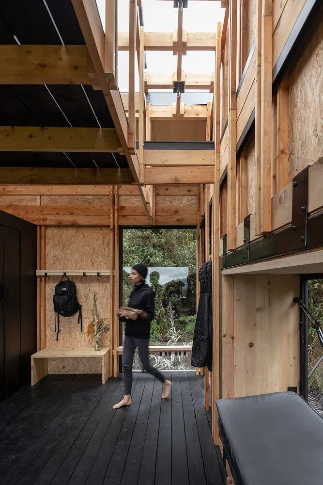 厨房的烹饪台面可以展开,提供就餐和工作的区域。浴室旁边的淋浴间 llucha( kichwa 语的裸体)有一个浴缸,完全置于外部的树木和灌木丛之中。在顶层,有一间放有双人床的房间,这里从正面可以看到泻湖( Lagoon ),从顶部可以透过屋顶看到星星。
