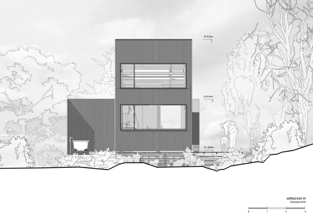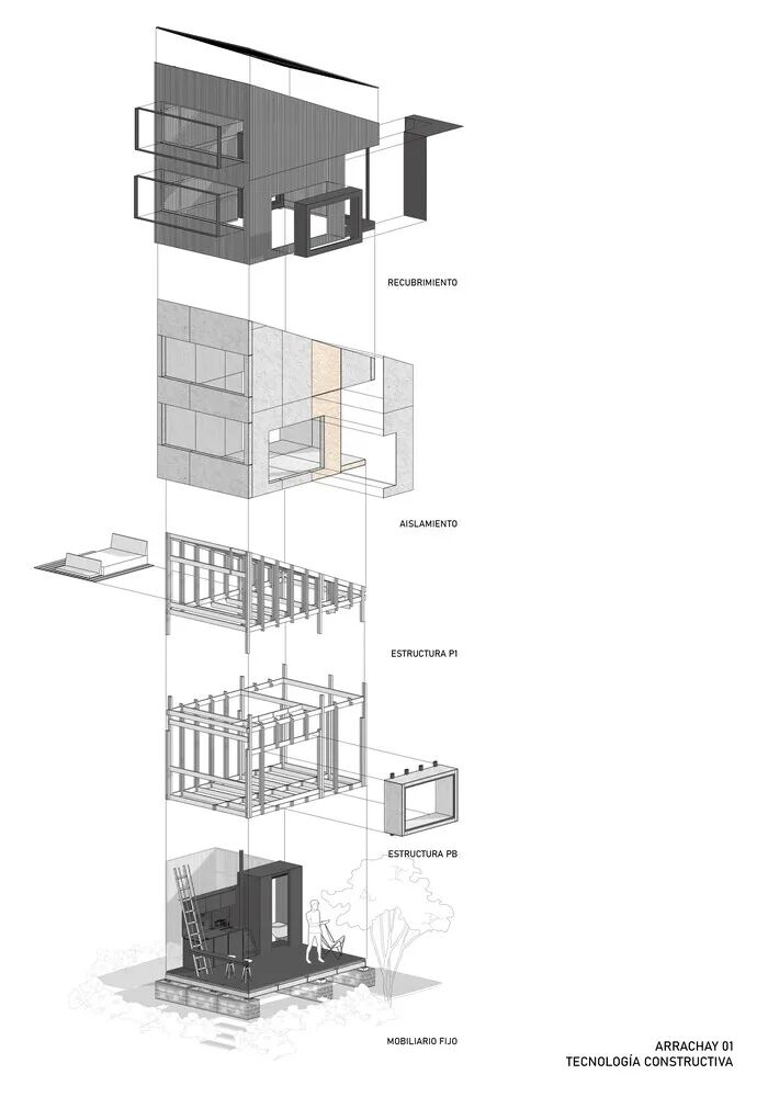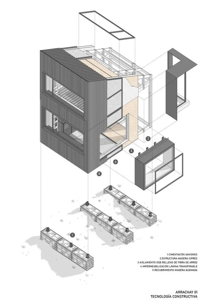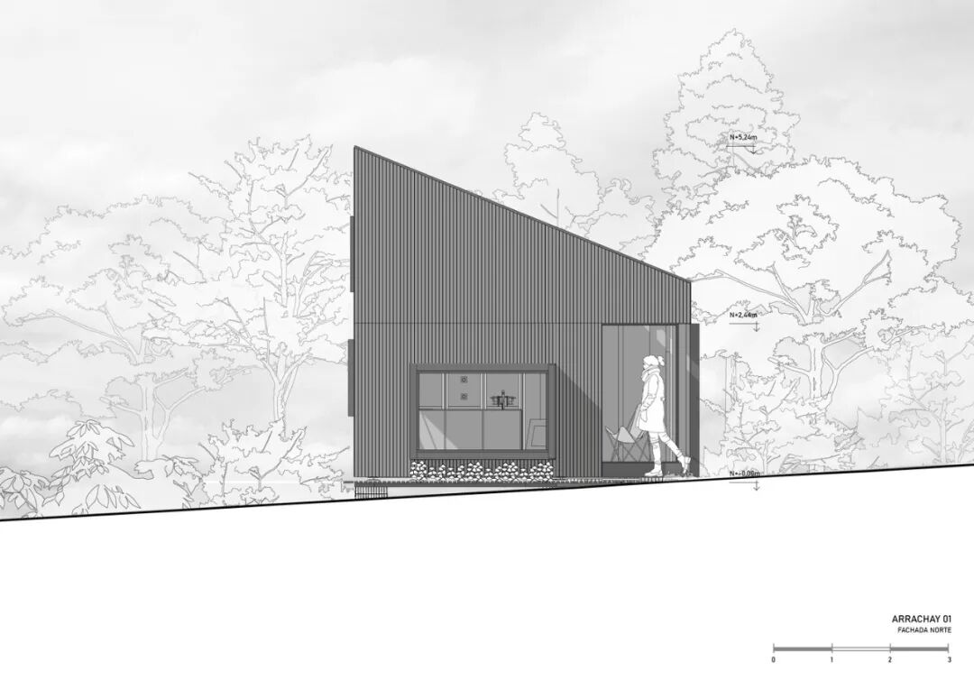 Arrachay 来自 Quichua 语言:Arrarray 意为非常炎热(agua termal), Achachay 意为非常寒冷 (páramo andino)。这个项目是业主自发建造,也是多年梦想的结晶,包括了当地技术的使用,建造环境的挑战,是一个小巧却又灵活的建筑。该项目在疫情期间设计完成,基于新生术语“工作假期”( workations ),其目的在于挑战一个新的工作方式——在一个绝佳的自然环境中远程工作。