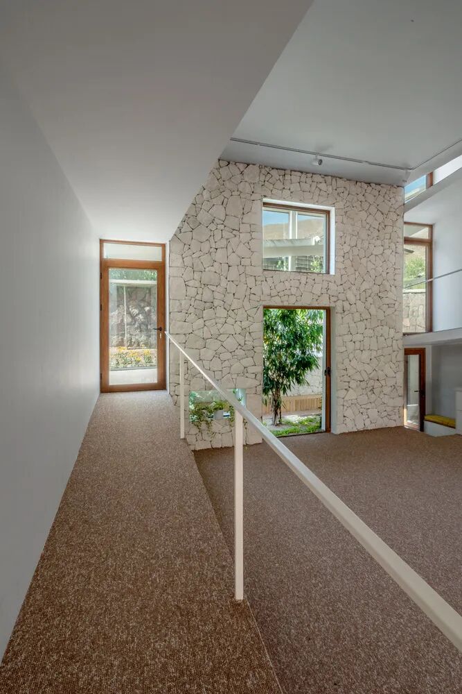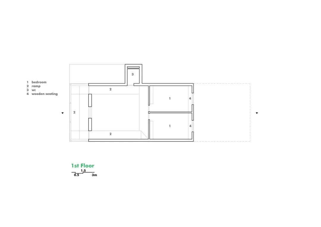 设计的最后一步则是将场地水平和垂直方向的通道打造为坡道,从而避免扁平化或台阶化斜坡场地。坡道的设置也为整个建筑提供了更顺畅、更舒适的动线,同时也增强了空间使用的自由感。