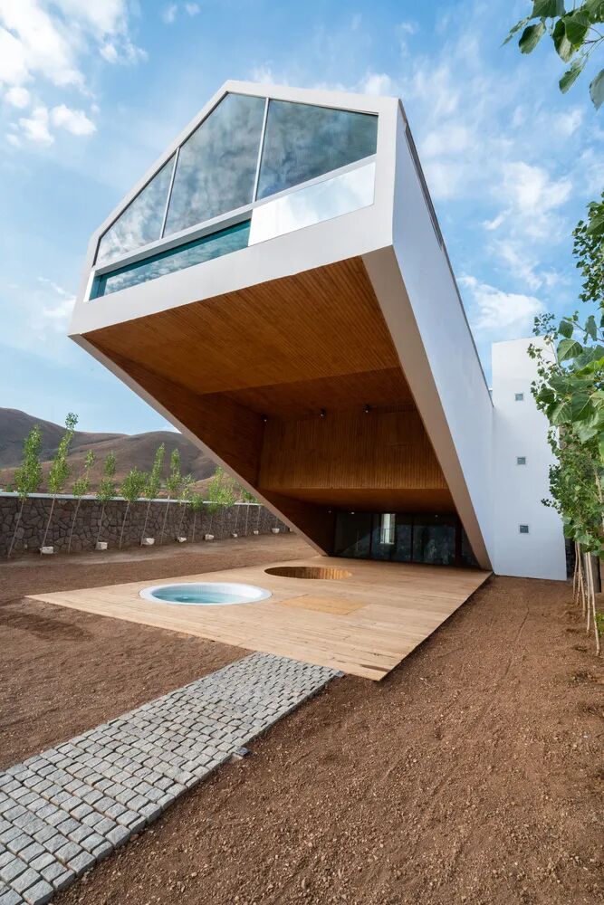 Dasht-e-Chehel 别墅是一栋可以在寒冷气候中给人“内外兼修”的空间体验的建筑,它的设计主旨是为人们在风雪大雨中提供一处庇护所,并帮助人们“远离”建筑。这栋别墅设计的一大挑战在于如何让人们身处内部的同时,不失去与外界连接的感官、视线和心理联系。因此,建筑需要模糊内外界限,并有着极大的自由度。