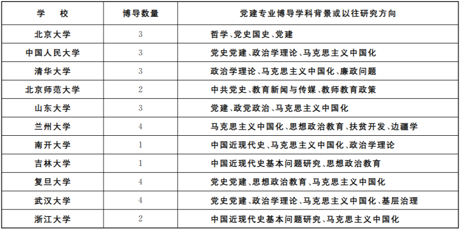 注:该表根据《全国党的建设专业博士点博导基本信息表》(杨德山制)、采访信息和各校在网上公布的招生信息制作。