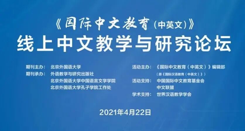 为顺应当今线上中文教育的发展趋势,《国际中文教育(中英文)》于4月22日举办了线上中文教学与研究论坛,与会的12位专家学者围绕“线上中文教学与研究”作了主题报告。扫码即可免费观看部分回放~