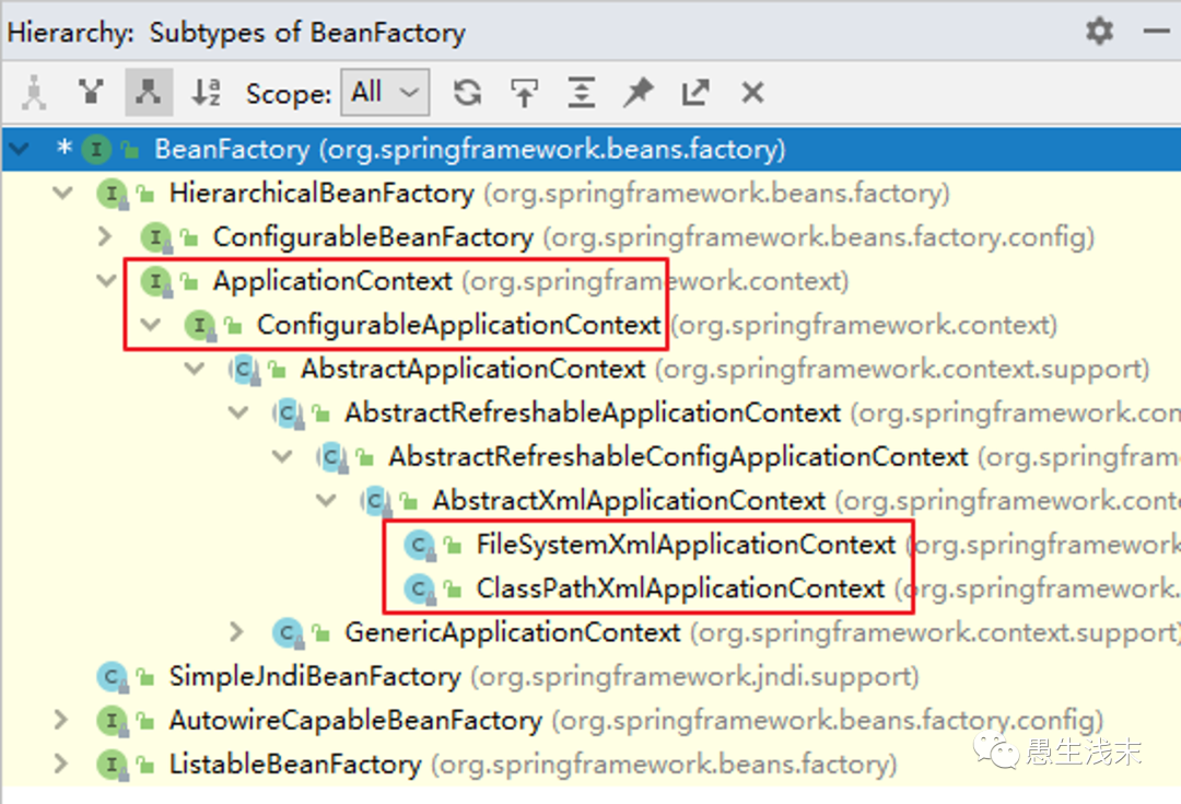 | ConfigurableApplicationContext | ApplicationContext 的子接口,包含一些扩展方法refresh() 和 close() ,让 ApplicationContext 具有启动、关闭和刷新上下文的能力。 |