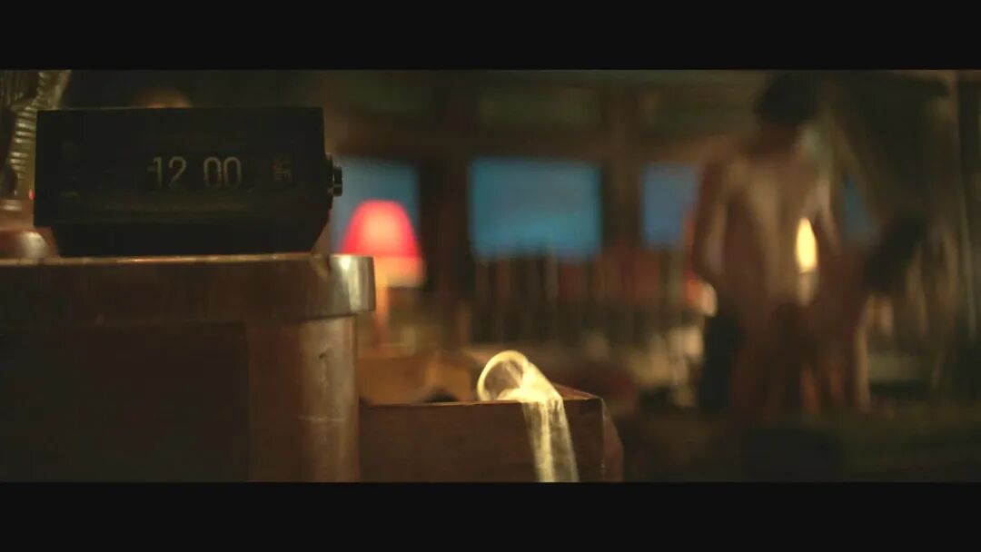 入夜,灯红酒绿的夜生活开始了,男男女女,你侬我侬,男女主相遇行鱼水之欢,从月明星稀酣战至晨光熹微。一面感叹年轻人活力满满,一面注意到一个细节:男主中途扔掉了安全套。镜头专门给到了特写,一切诡谲之事也是从这个安全套开始,称这个故事为“一个安全套引发的血案”一点不为过。