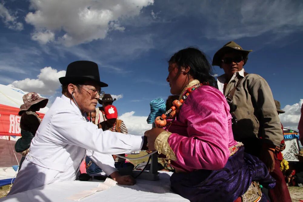 △2013年8月13日,吴天一在青海省玛多县为当地藏族群众义诊。新华社发(温家林 摄)