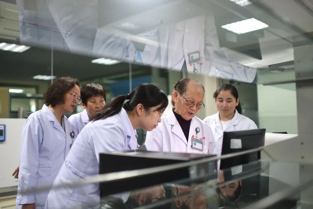△2021年6月17日,吴天一(右二)在青海西宁的实验室内指导学生。新华社记者 张宏祥 摄