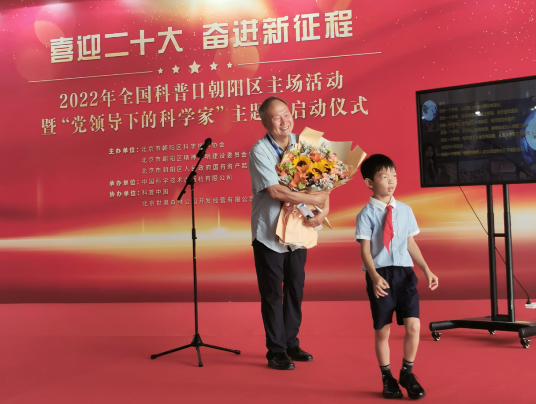 △演讲结束后,现场的小朋友为孙为钢总师献花。