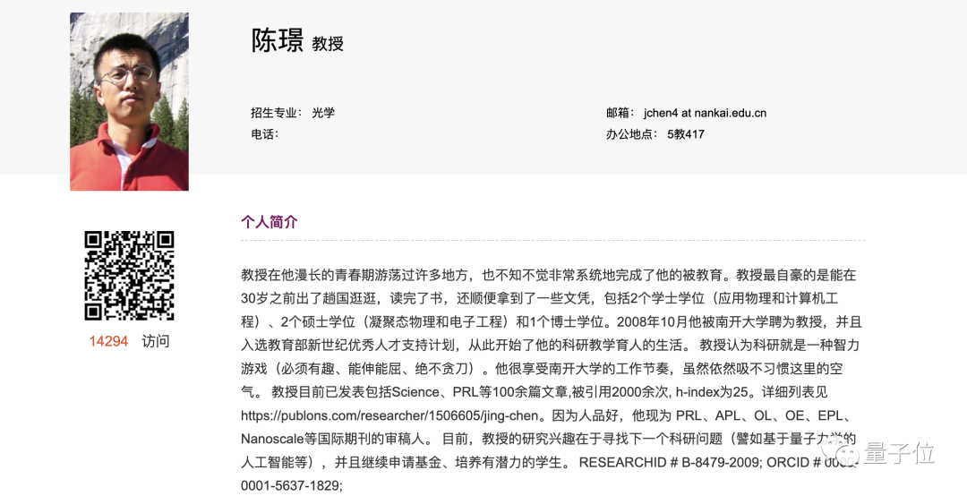 但在网友们的力量之下,另一位教授的个人简介也被扒了出来——南开大学物理学院,陈璟教授。