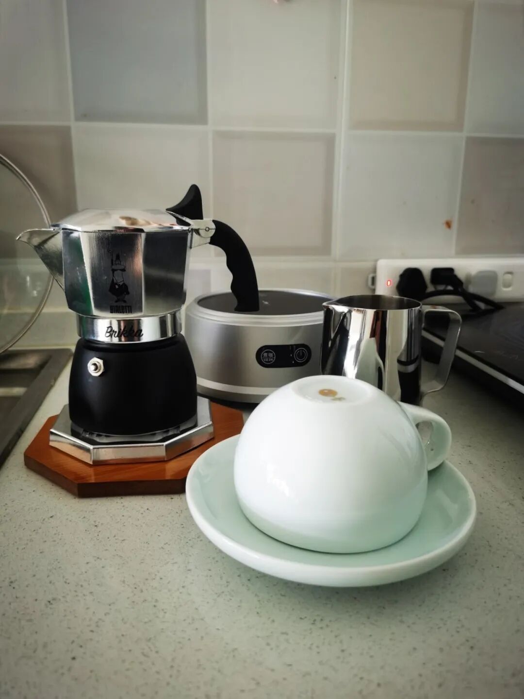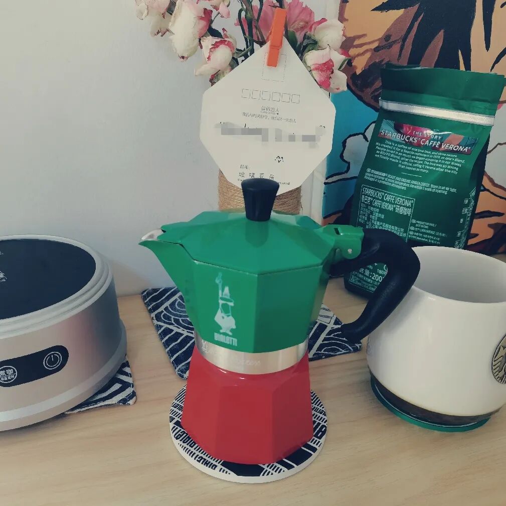 “种草多年的摩卡壶,终于拔草了,买了最爱的意大利三色摩卡壶。因为原来有半自动咖啡机和手冲套装,这次就买全套摩卡壶套装。卖家送的壶调和打奶器太棒啦!