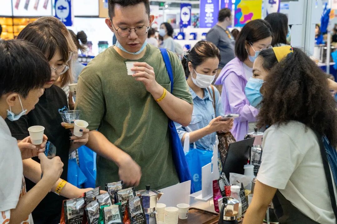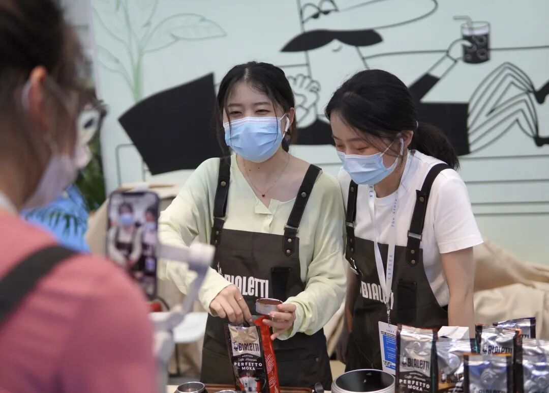 一个开朗的大家庭在展位前用潮汕话做内部交流的暗号,一问,原来一家老少都爱喝茶和咖啡;一对戴着可爱的遮阳帽的阿姨,夸赞一路喝下来属我们的咖啡最好喝;还有一对女生好友,其中一个在我们煮咖啡的时候悄悄和朋友话:“摩卡壶的咖啡液出来的时候超治愈,待会你看看~”在这里,爱咖啡的人们都热情可爱有礼貌,让人印象深刻的人和事数不胜数。