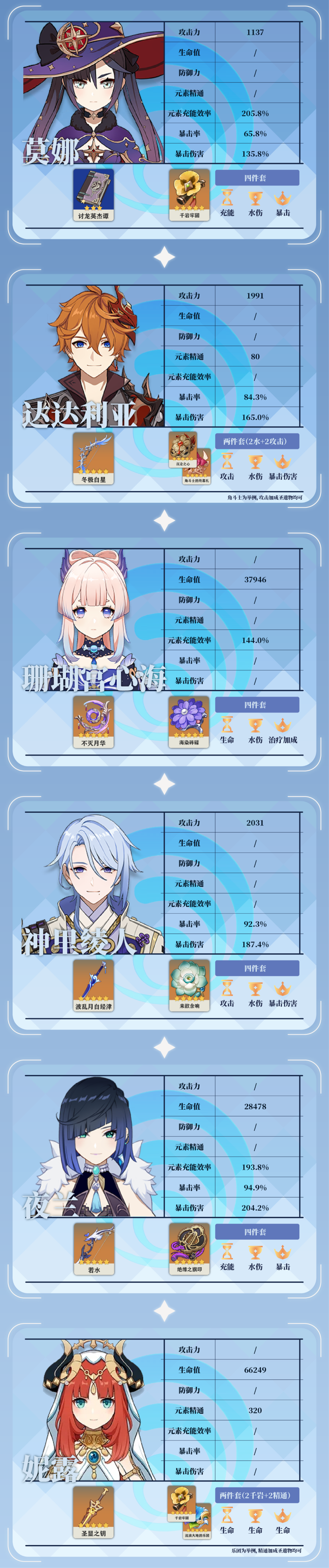 旅行者们大家好呀,本期为大家带来的是五星角色毕业面板参考表。