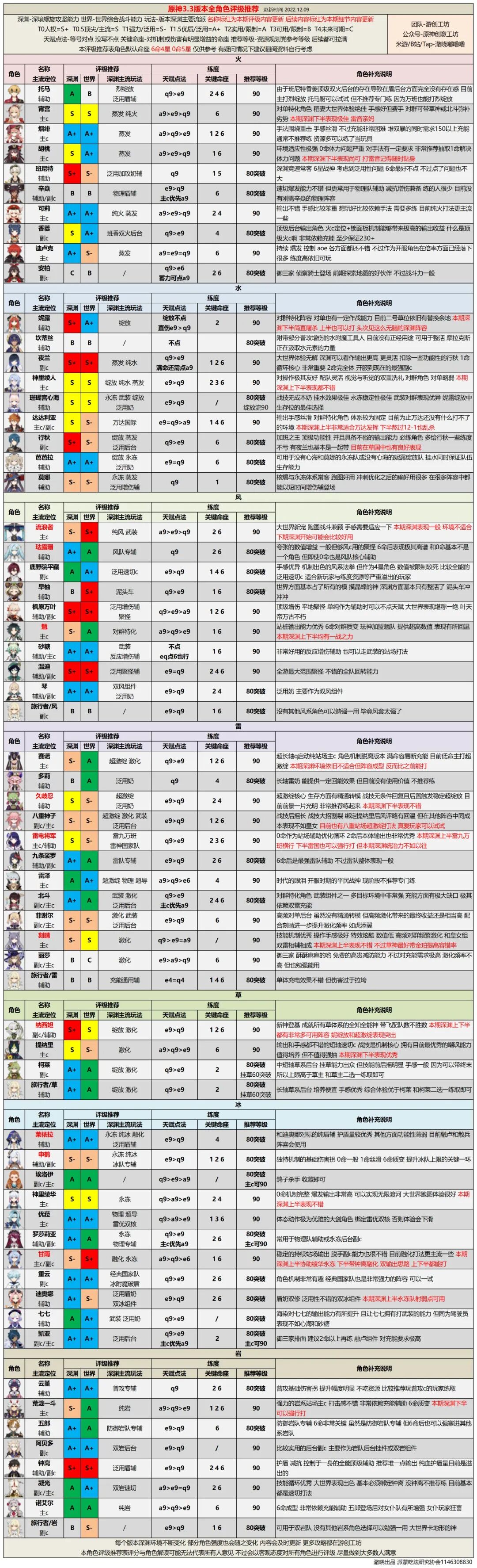 因此今天为大家带来3.3版本全角色评级配装!本攻略将会为大部分旅行者解答心中的疑问,另外,图表中内容并不能讲完新角色的全部内容,因此如果想多了解一些新角色内容,请结合文字内容食用(魈珐配队在珐露珊简析)!