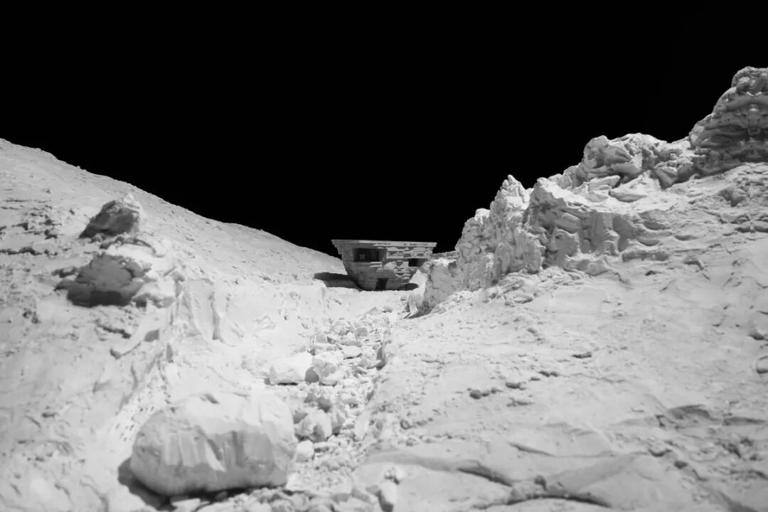 通过蜿蜒狭窄的楼梯上至开阔的屋顶平台,眼前将豁然开朗。远山和长城形成一幅气势磅礴的山水画卷,建筑置身其中,犹如一只朝向天空的耳朵,聆听自然的回响。