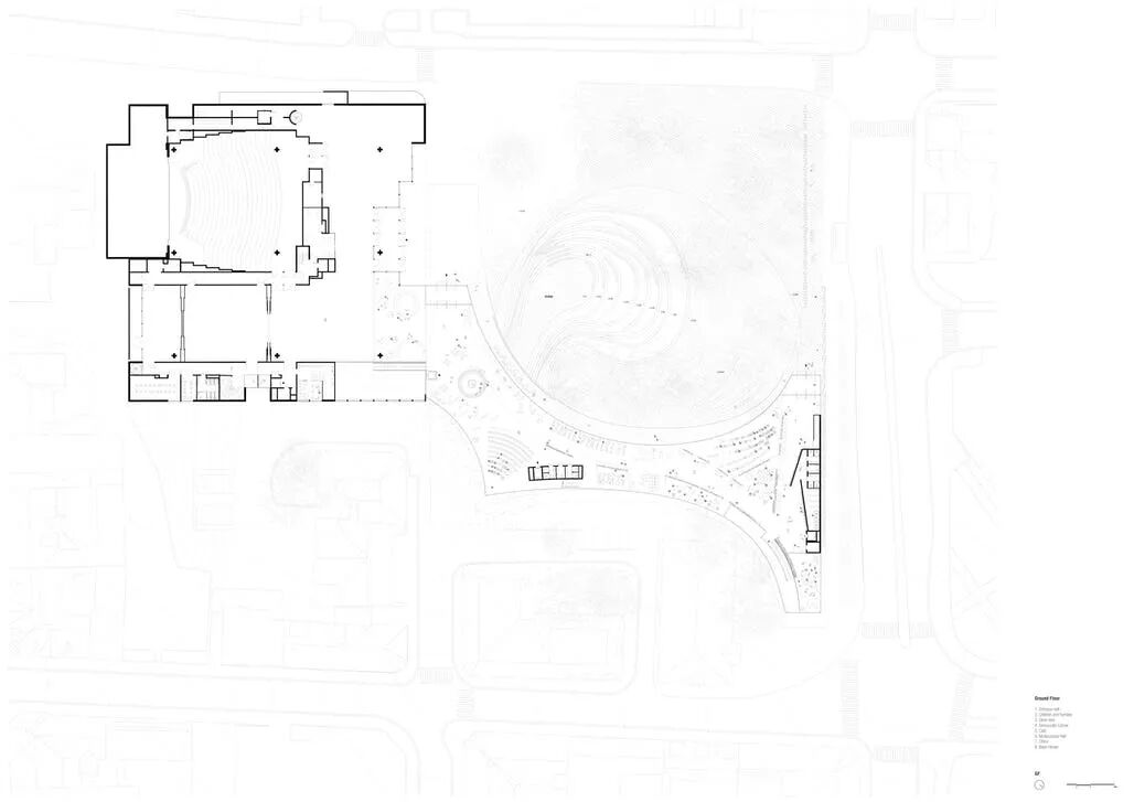项目将附近现有的公园与城市连接,并利用了向下倾斜的坡度,以此让人群可以流入建筑所在的场地。新图书馆将打造包含居民服务区、咖啡厅、儿童区、游客信息中心以及国家易卜生中心的“连续旅程”,并将城市景观与图书馆联系起来。
