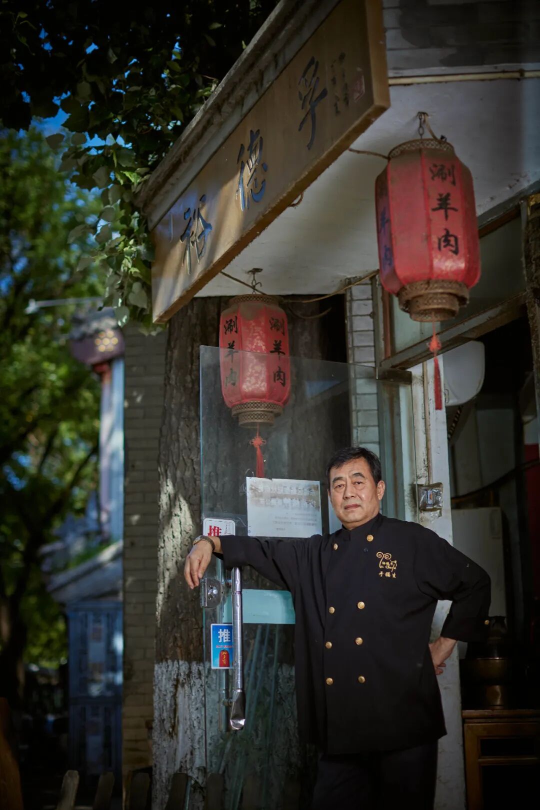裕德孚地处簋街西侧的一个把角处,如不留意招牌,很容易走过。门口有棵大槐树,十几年前,于大爷经常支张桌子,跷着腿坐在树下,喝茶、抽烟,见有客人来了招呼入座或是安排等位,见到熟人递上根烟,聊上几句,起身儿走进店里转转,不为别的,主要是看看徒弟们切羊肉的手艺都在不在线。不出意外,“没毛病”,于大爷说。