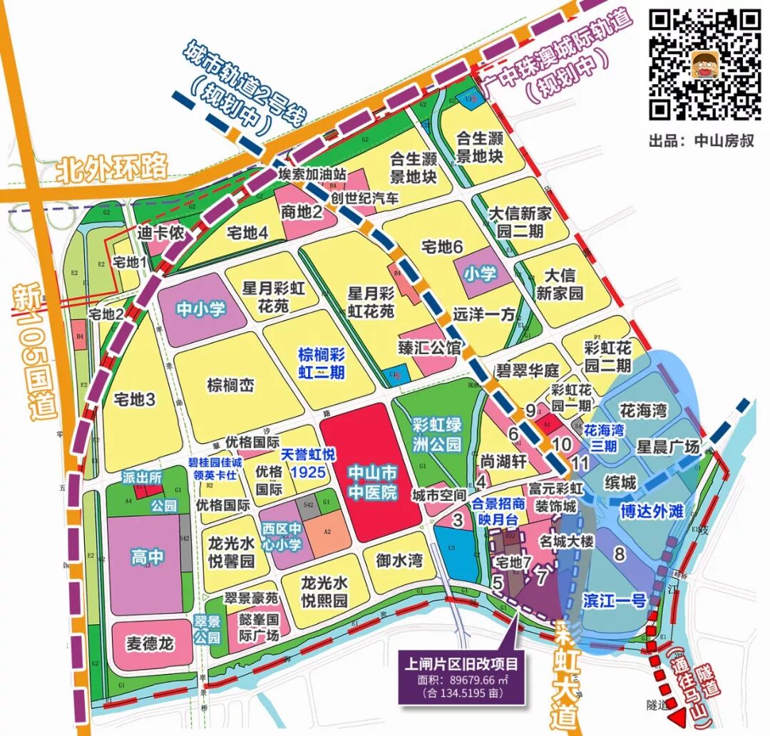 随着马山进入重要性节点,房叔在《中山市西区彩虹片区控制性详细规划调整》发现,彩虹片区早已预留了一条通往马山旧改的隧道。