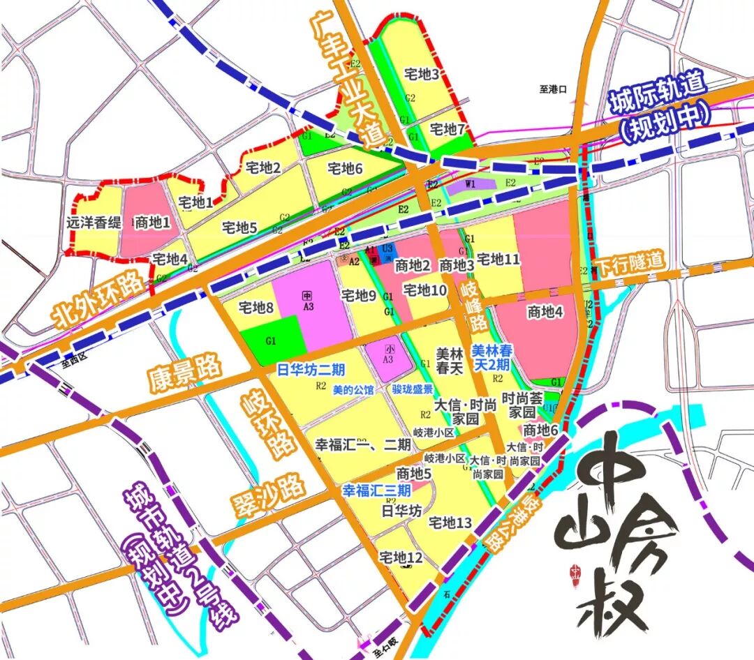 从早期的规划可以看出,中山城市轨道2号线途径板块的南侧,线路与板块内岐港公路重合。