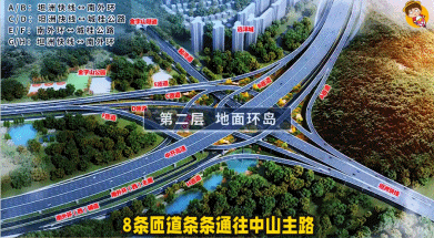 南外环、民众快线、南朗快线、古镇快线等快速路,还有中山重磅的交通工程——金字山互通立交全部建成之后,将极大的优化中山市区与镇区的路网结构,有效疏解市内交通拥堵。