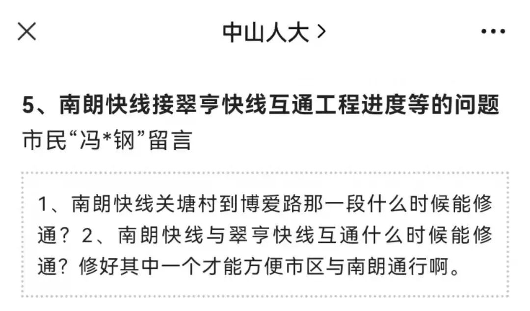 不久前(3月14日),有市民咨询南朗快线接翠亨快线互通工程等问题: