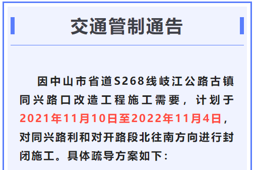 去年11月份发布的交通管制通告来看,可知该改造工程计划于2022年11月4日完工。