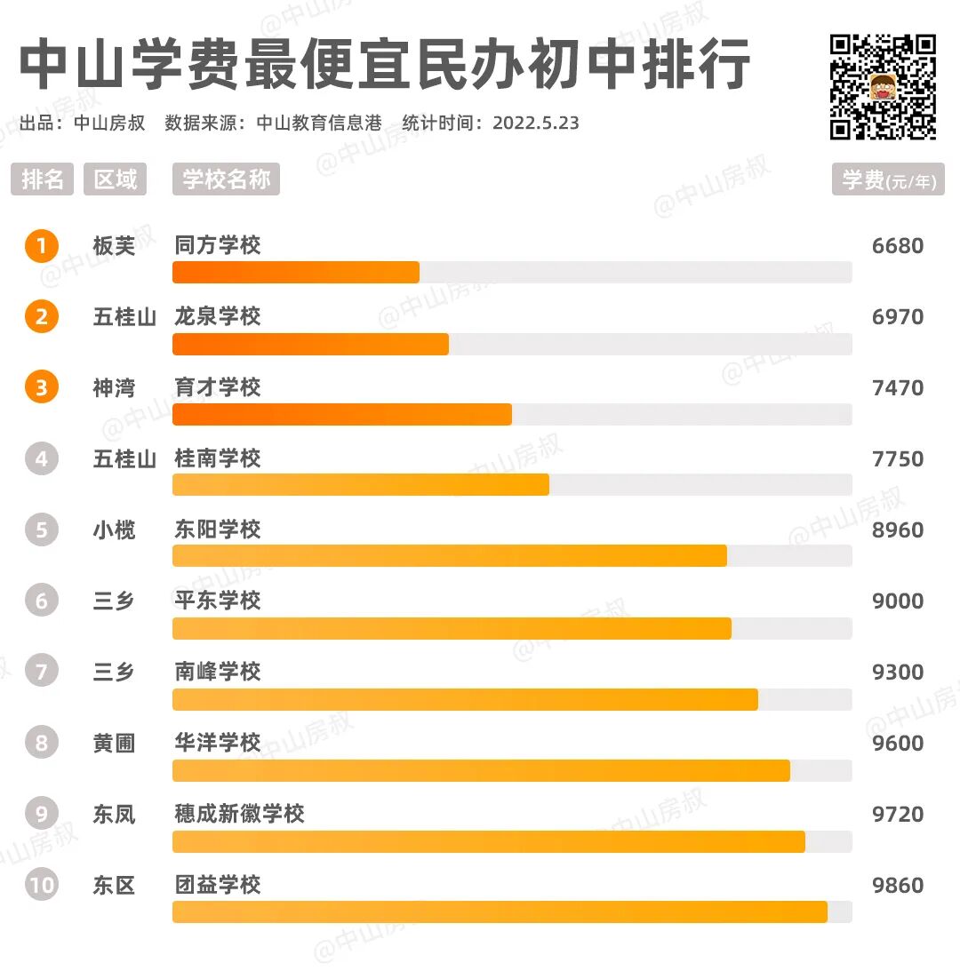 首先,我们来看看中山民办小学学费排名情况。