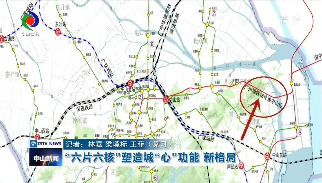 一个多月前,中山新闻发布的视频——预见岐江新城:“16126” 中山的强“心”密码(3分04秒处)中,出现了18号线中山段的站点图。