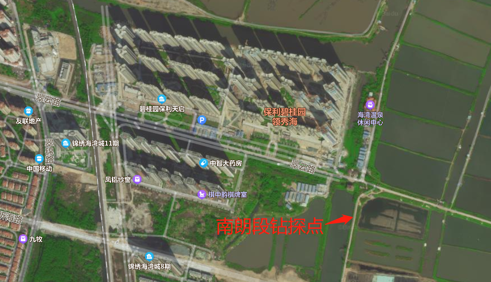 除此之外,据另一位网友爆料,位于南朗保利碧桂园领秀海附近,也有钻探勘察点。
