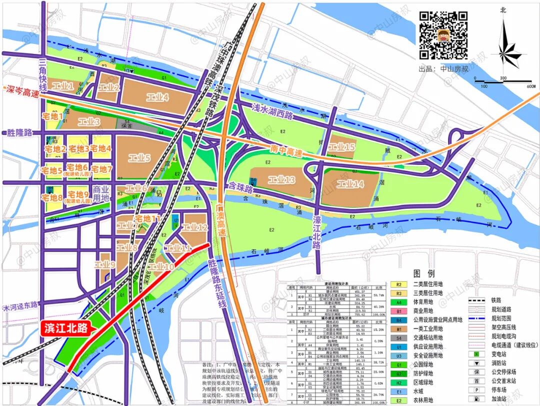 总的来说,这5条路都位于港口胜隆片区,都是新建的道路。若是同时修建,对于原本就存在的道路,可以说是影响不大。意思就是,堵车的痛可以忽略。但不得不说,这些道路的修建打通了滨江东路、木河迳东路、胜隆东路的“断头路”,让胜隆片区整个路网都“活”起来了。| 来源:《中山市岐江新城D、E、F单元(胜隆片区)控制性详细规划(2022)》![]()