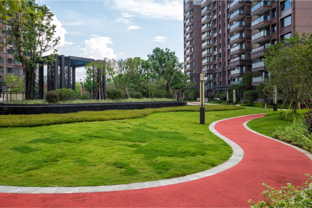 而架空层和楼栋之间,还都配套有羽毛球场、乒乓球桌、阅览室、健身区、休憩沙发等全龄化设施。在老赵看来,下楼就能运动、健身、休闲,反而比一些小区会所还方便省钱。所以毋庸置疑,早在2019年,该盘就已是中山当年唯一荣获“中国土木工程詹天佑奖优秀住宅小区金奖”小区,是楼市人人向往的标杆,受到很大一部分教师和医疗工作者青睐。“你们不知道现在有多卷!二期的绿化率去到43.51%,就差6.5%就达50%,相当于一半楼、一半园,好疯狂啊。”老赵说道。在中山,住宅的普遍绿化率为30-35%,能达到40%已是超高级别,尚东新天地43.51%无异于颠覆性的存在,放在整个湾区来看,也是现象级。据悉,仅仅是二期16/17栋的园林展示区,造价就已经达百万级。更别提,随着交楼时间越近,整体精细化越完善,能打高尔夫的阳光大草坪、每栋楼标配的休闲庭院、多功能运动场,让二期园林整体更加之亮眼。实际上,能够斩获住宅届的“奥斯卡”大奖,成为全国每年仅20个项目的其中之一,这份荣誉已经说明了问题。据老赵一手消息,经过一段时间的精工沉淀,尚东新天地二期不仅园林升级,连交标也实现了跨越式提升,而且还是现楼登陆。