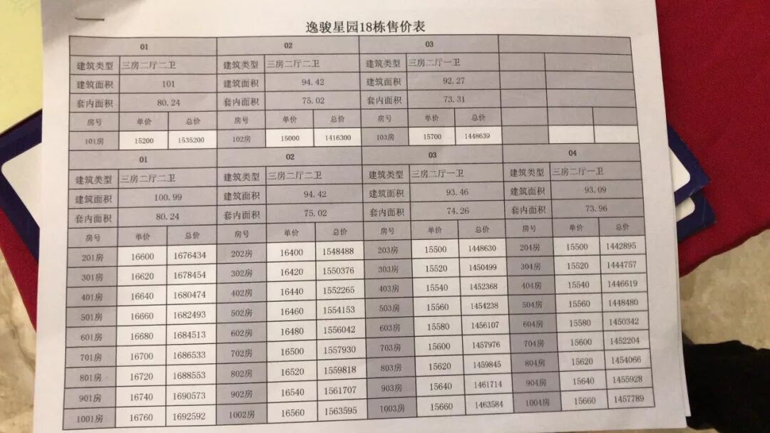 ▲分别为17栋和18栋计价表