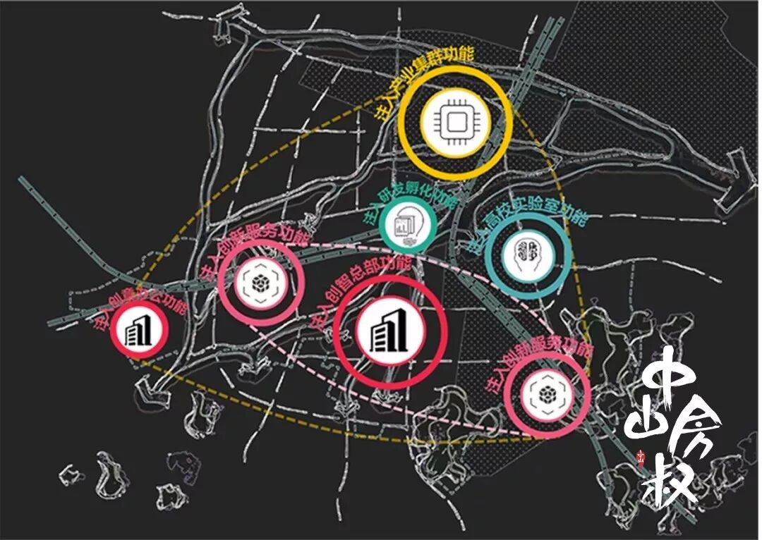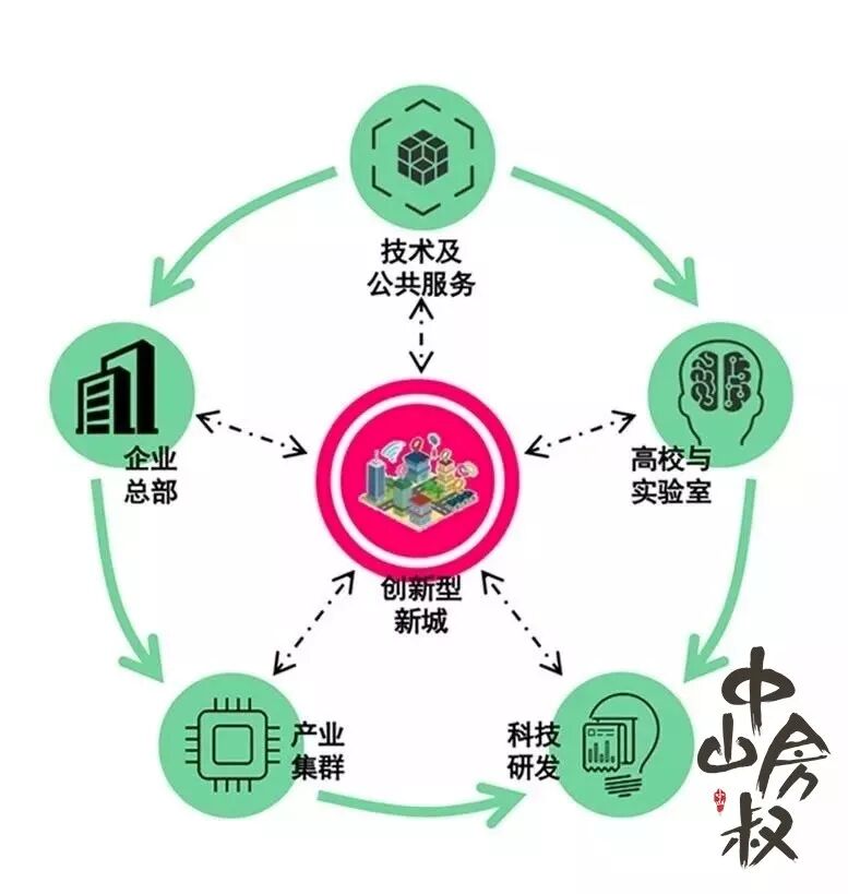 打造集“高校实验室——科技研发——产业聚集——创新企业总部——创新技术服务”五大创新产业功能为一体的创新产业集群,建立科教园区吸引国内外高校和基础科研资源,吸引湾区国家重点实验室等科研资源;建立创新产业集聚区引入创新型企业,校企联动引领创新产业的双向发展;依托创新服务营造创新产业新环境,培育孵化本土创新型企业,通过构建多元复合的创新服务空间及人才生活空间,营造创新新城氛围。