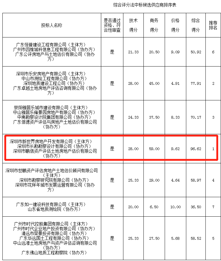 从中标候选供应商排序表显示,时代、雅居乐、卓越等房企也参加了本次投标。