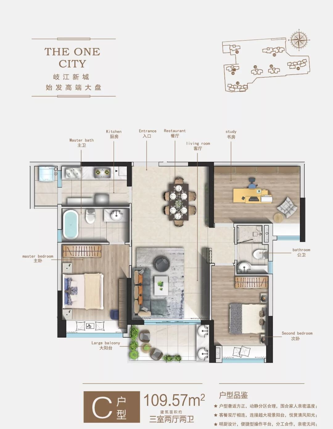 目前周边配套成熟,依靠尚城、丽港城小区、濠头村成熟居住片区,幼儿园、超市、会所已有招商,各种补习班已入驻。