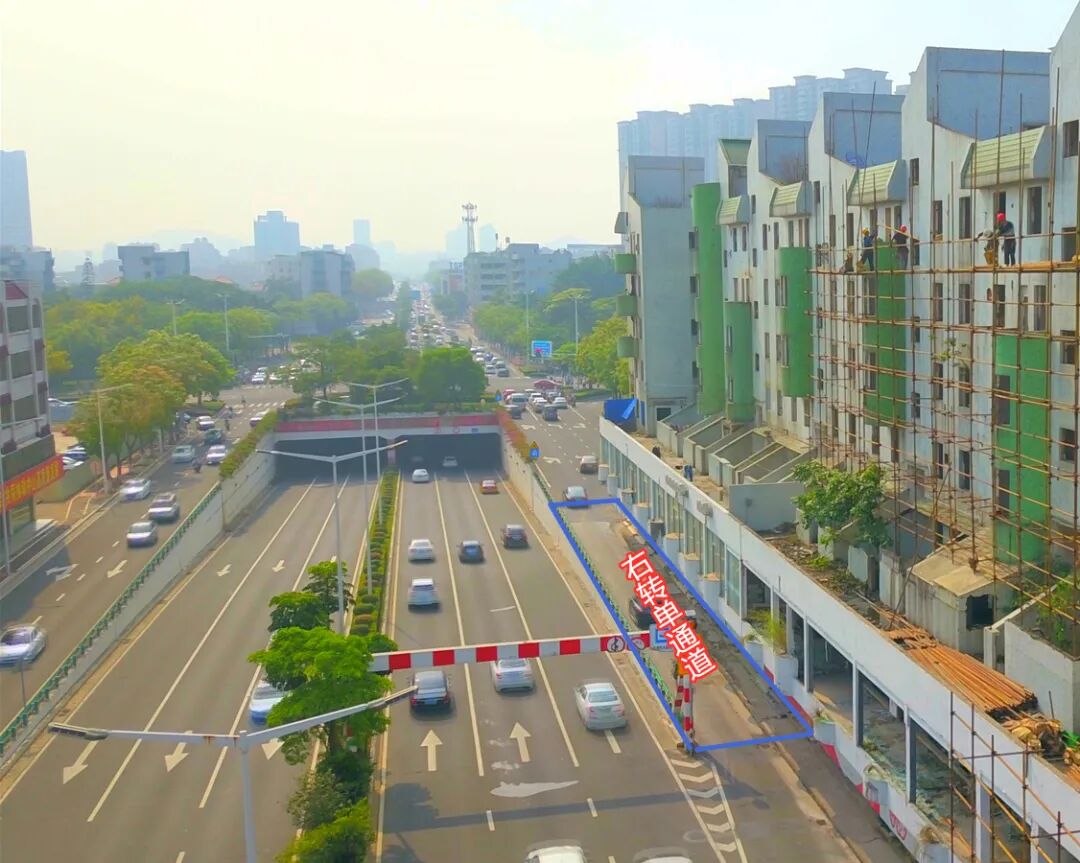 此前,在确保下穿隧道能达到双向6车道,留给右转至悦来南路车道的空间甚小,因楼栋的存在,旁边的辅道上,只有1条车道,大型货车根本无法通过。![]()