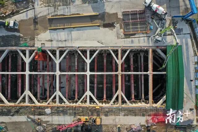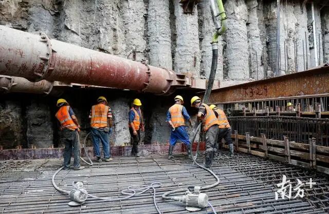 中山(石岐)总部经济区富康北路地下道路首段底板浇筑完成
