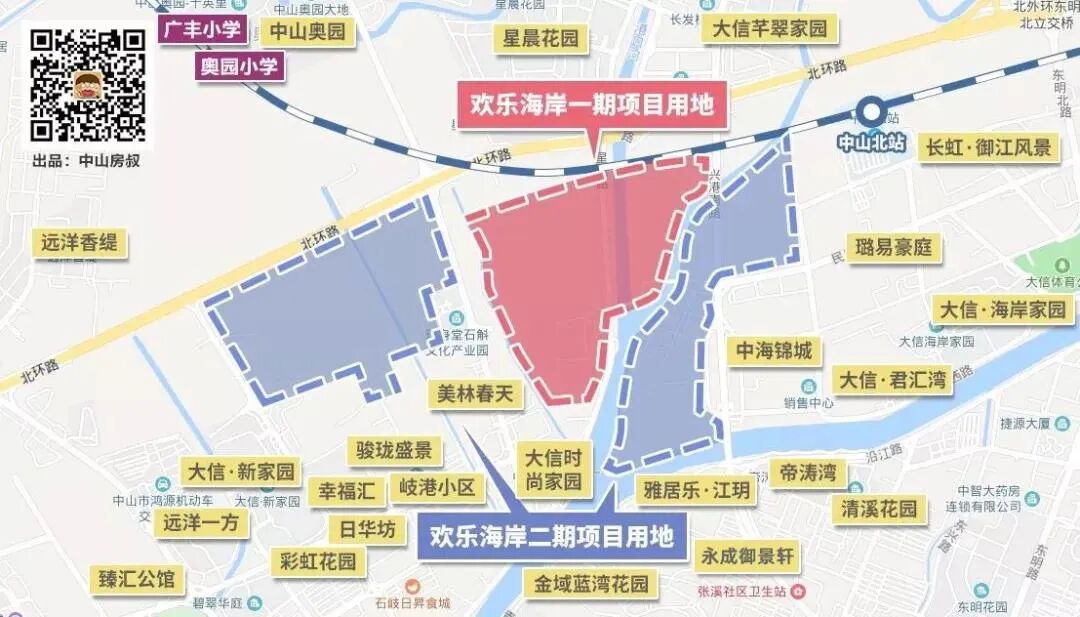 其四,周边都“动”了起来,欢乐海岸一期动工、石岐总部动工、东区总部拍地、白沙湾片区搬迁。多数规划都进入了实操阶段。那么这个区域是否值得置业?秉承着求证的心,房叔来到现场,为大家梳理了整个板块。先来看一张图,下面中黄色的区域,就是板块中规划为住宅的地块,其中在售的项目共有2个。