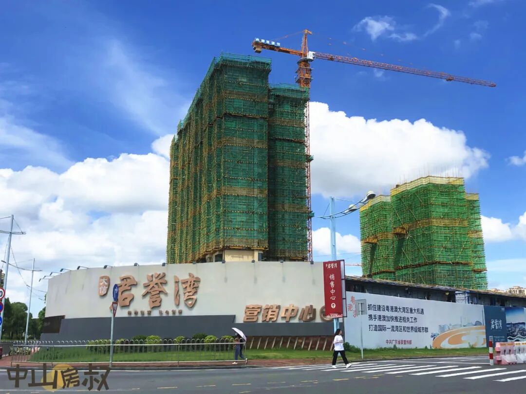从现场来看,底层的外立面已经砌筑完毕,最高已建至20余层。在项目不远处,大信君誉湾的销售中心已经开放。