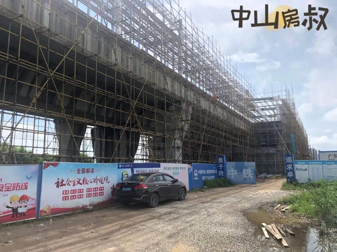 就在今天,位于中山南朗明珠路北侧的翠亨站站名安装完毕,整体进度再加速,最快国庆前完工。