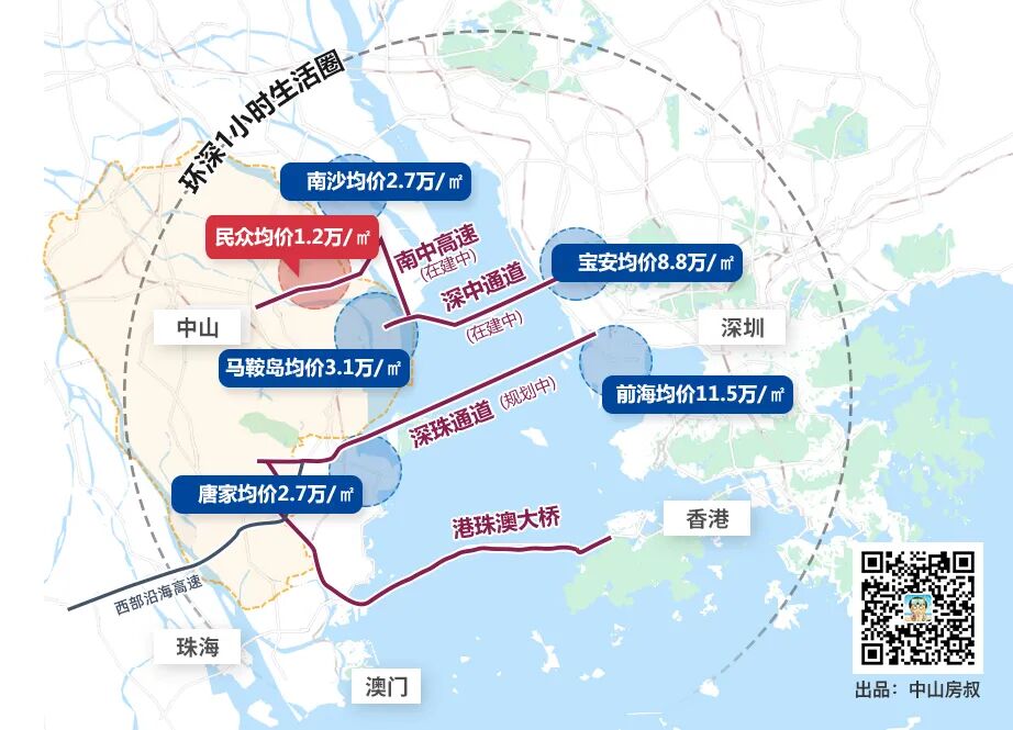 房价上,中山是珠江口的洼地,政策上,中山更是珠江口的福地。更不用说地理位置了,几何中心的位置,哪个城市都羡慕吧!