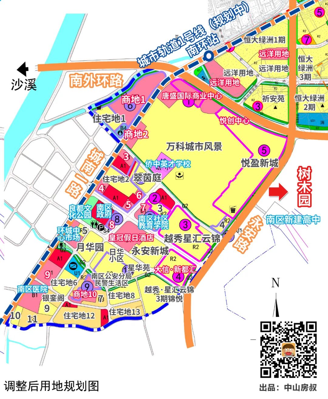 西区控规今年也有小调整。彩虹的高中动工了。沙朗东原来接驳黄圃快线的路线也调整了。