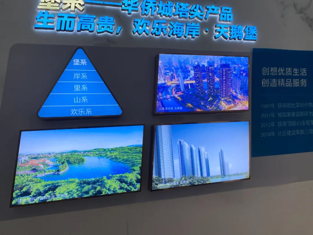 在项目的城市展厅可以看到,华侨城天鹅堡,定位为顶级的堡系产品,对标的都是上海苏河湾、深圳新天鹅堡等高端产品。