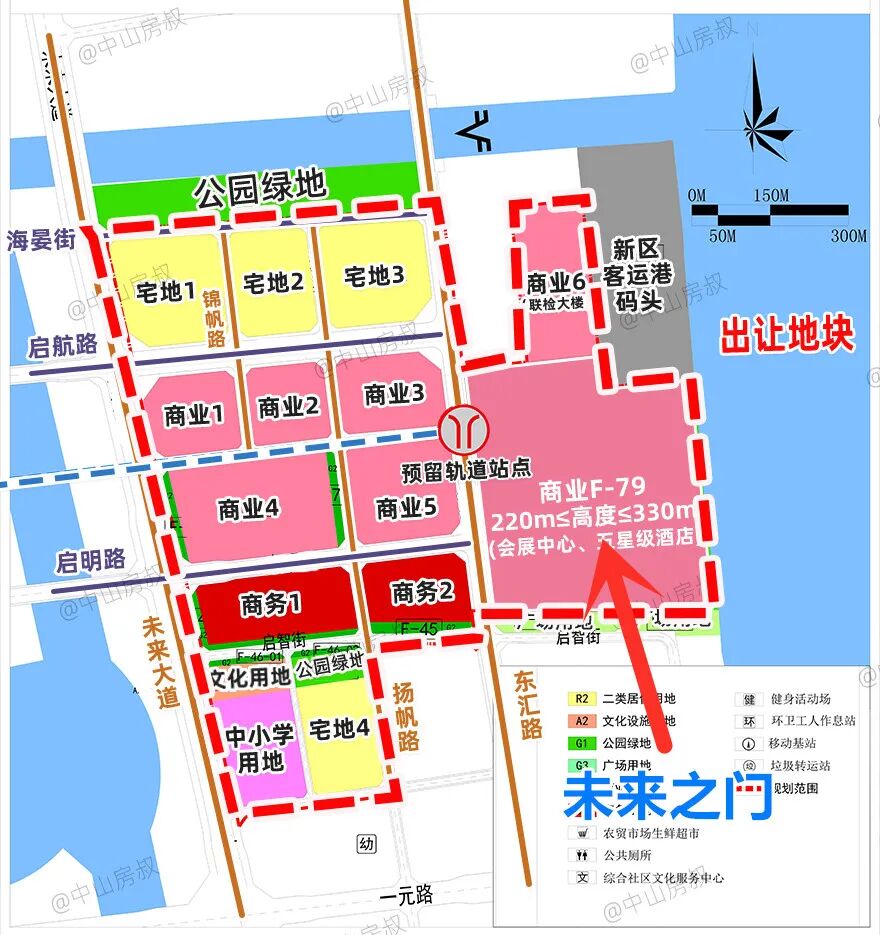市外,片区东侧是中山客运港码头,一小时内可到达香港、澳门、深圳机场。客运港码头片区也在日前公开土地出让预公告(详戳)。