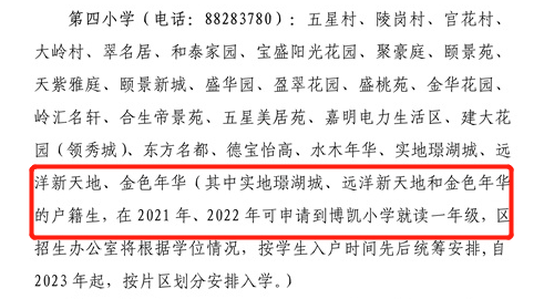 该学区的户籍生,从2021年至该区域的新公办小学建成之前,可申请到第六小学就读一年级。区招生办公室将根据学位情况,按学生入户时间先后统筹安排,待新公办小学建成后,按片区划分安排入学。![]()