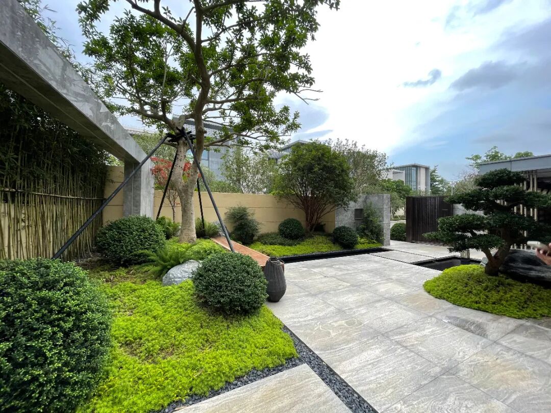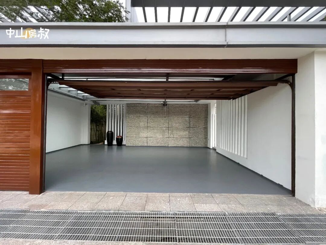 该别墅是独栋的,与隔壁并不相邻。样板房的门口和院子里的绿植都是精心打理好的样子。