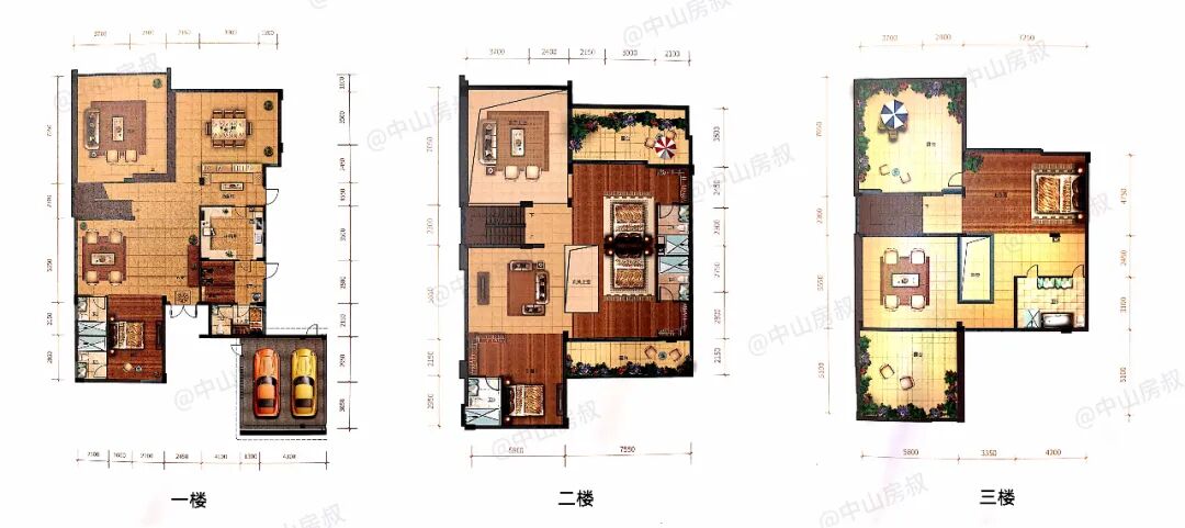 从户型图上看,该别墅一共有3层,还另带了一个车库。