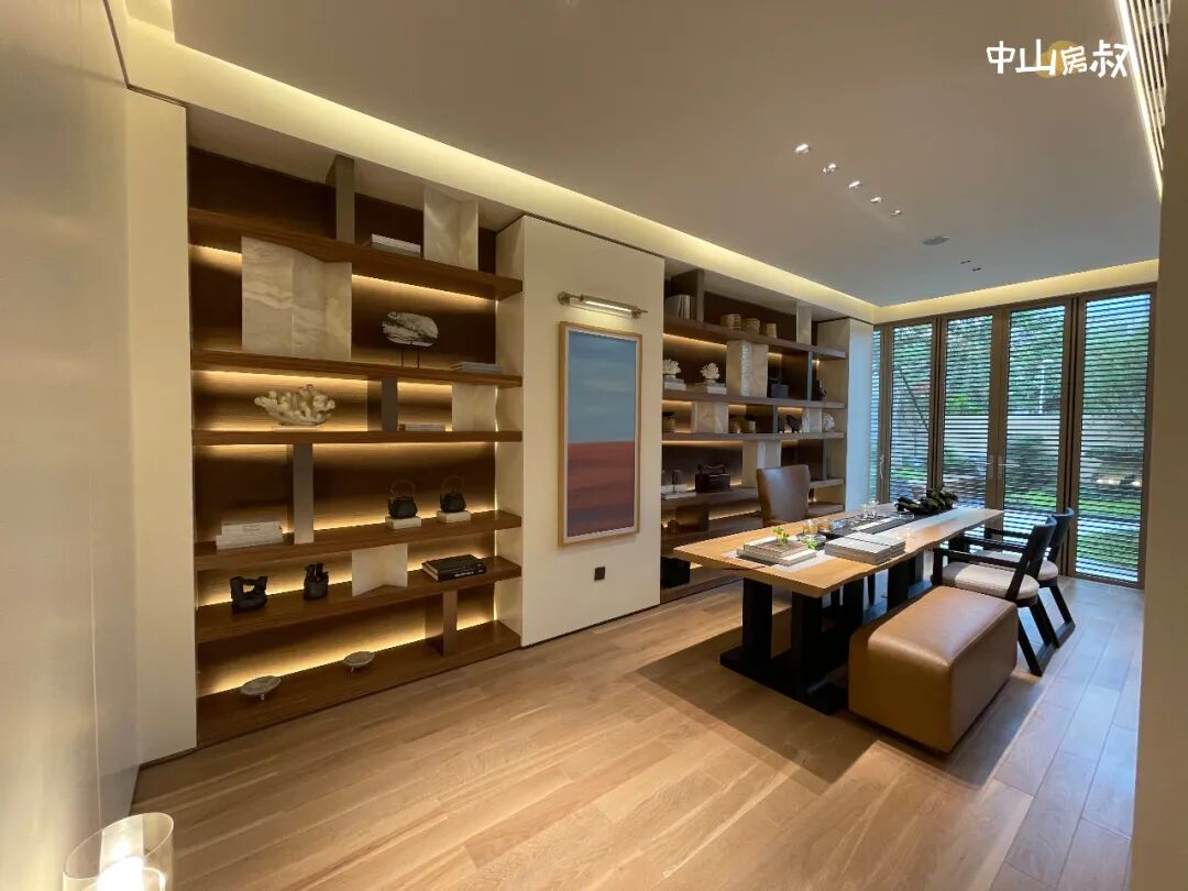 玄关一侧是男主人的书房,连通前院。一杯茶、一份文件,分分钟几百万上下。