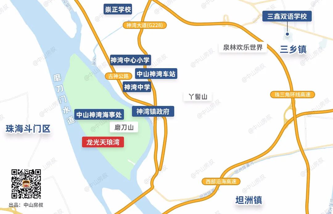 龙光天琅湾位于神湾的磨刀岛,与珠海斗门对望,家门口就是游艇会,水路就可去往粤港澳,周边环绕105国道、古神公路、广珠西线、西部外环高速(建设中)等多条主干道。