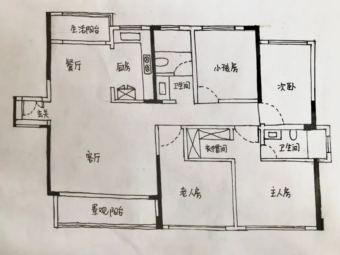 再来看建面约140㎡四房两厅两卫户型。